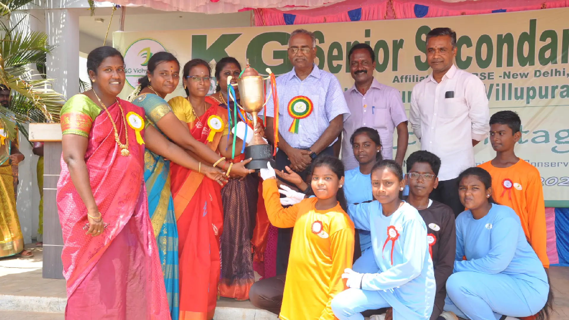 KG Vidhyashram celebrated the Annual sports Meet “Eco Vintage” on March 28th 2024. Dr. P.K. Palaniraj M.D presided over the function. The chairpersons Dr. Lion G. Senthil and Mr. G. Sundar added decorum to the function. The National Flag, the School flag and the sports flag were hoisted by the chief guest, chairperson and the principal respectively. The track events were conducted and the relay race also took place. The sports meet was based on the conservation of nature. So, the events conducted were related to nature. The Chief Guest The concepts of Nature’s gifts, the nature’s fury and the conservation of nature was depicted in the form of a drill. All the students participated in the drill. The overall trophy was acquired by the “Self Esteem” house. The prizes for Academics and Sports were distributed by the dignitaries. The vote of thanks was delivered by the school staff and the ceremony ended with the National Anthem.